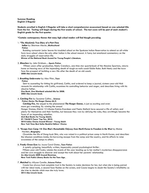 Summer Reading English 2 2013 Pdf Glenbard North High School